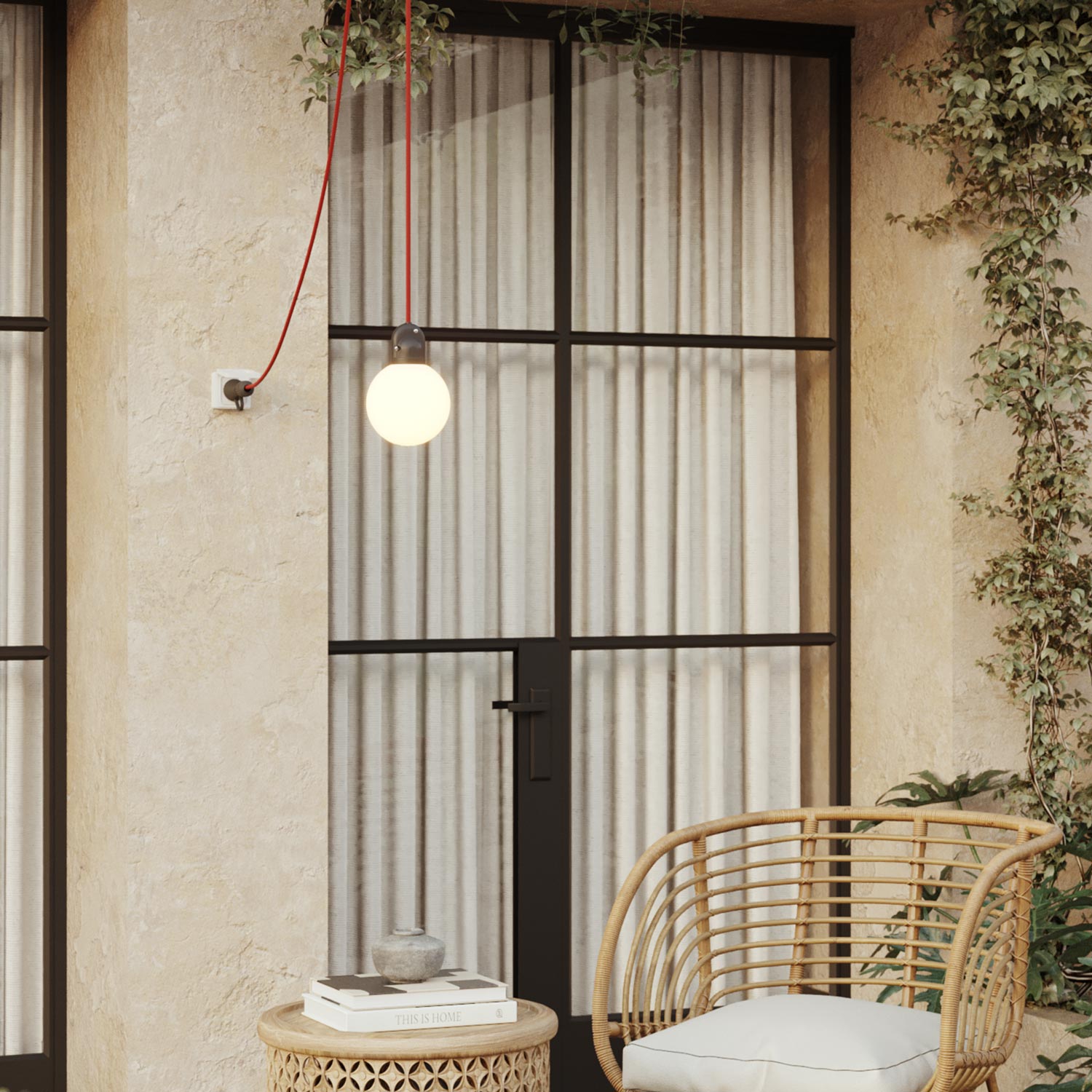 Snake Modulair Pastel, prijenosna vanjska svjetiljka, 5 m kabel od tkanine, grlo za žarulju IP65 i utikač – Losos