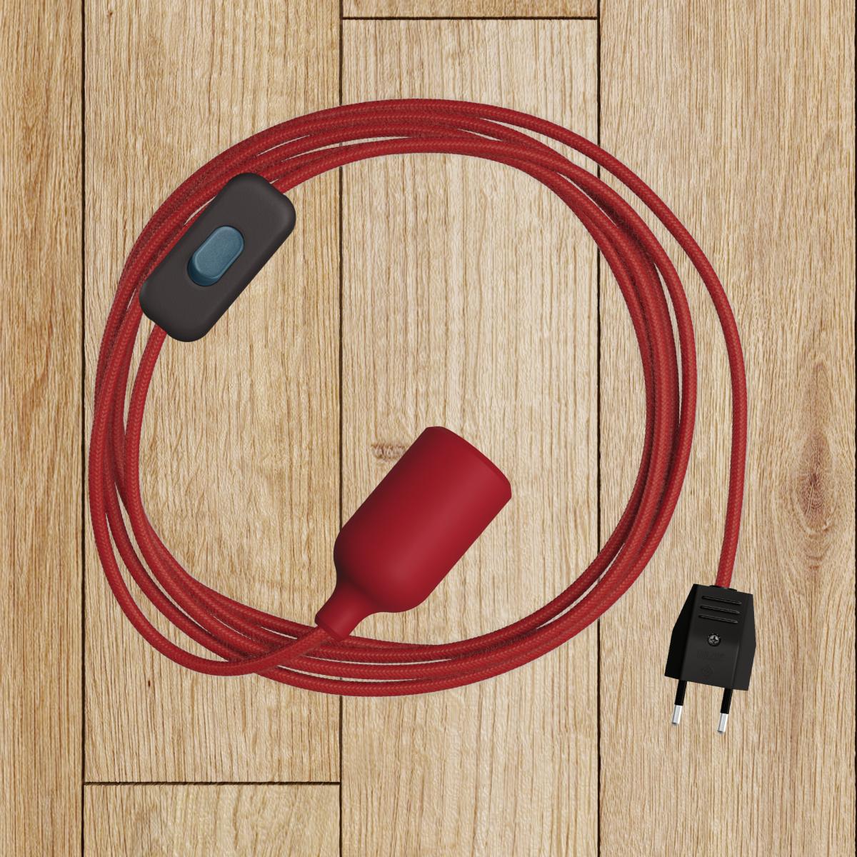 Portalámparas : 1X [KBS27RSS] Kit portalámparas E27 de silicona con cable oculto - Acabado: Rojo