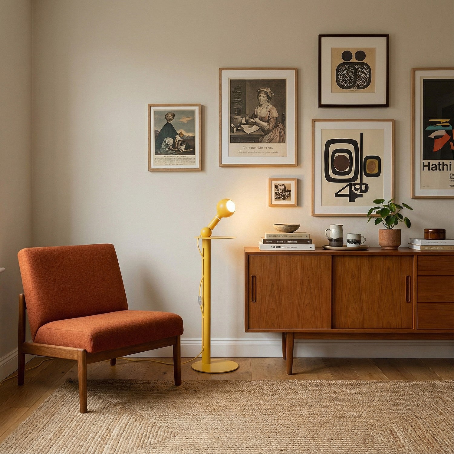 Rocco je kompaktna podna lampa osmišljena da u jednom elementu objedini funkciju rasvjete i odlagnu površinu. U ovoj žutoj verziji, željezna struktura postaje snažan koloristički akcent, zamišljen da stoji uz sofu i odgovori na praktične svakodnevne potrebe.