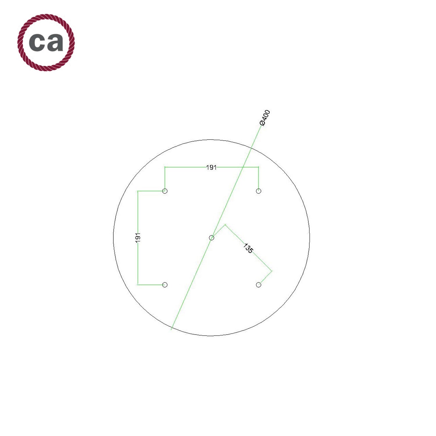 Stropna rozeta XXL Rose-One okrugla, promjer 400 mm s 5 otvora i 4 bočna otvora - Dibond Satinirani čelik