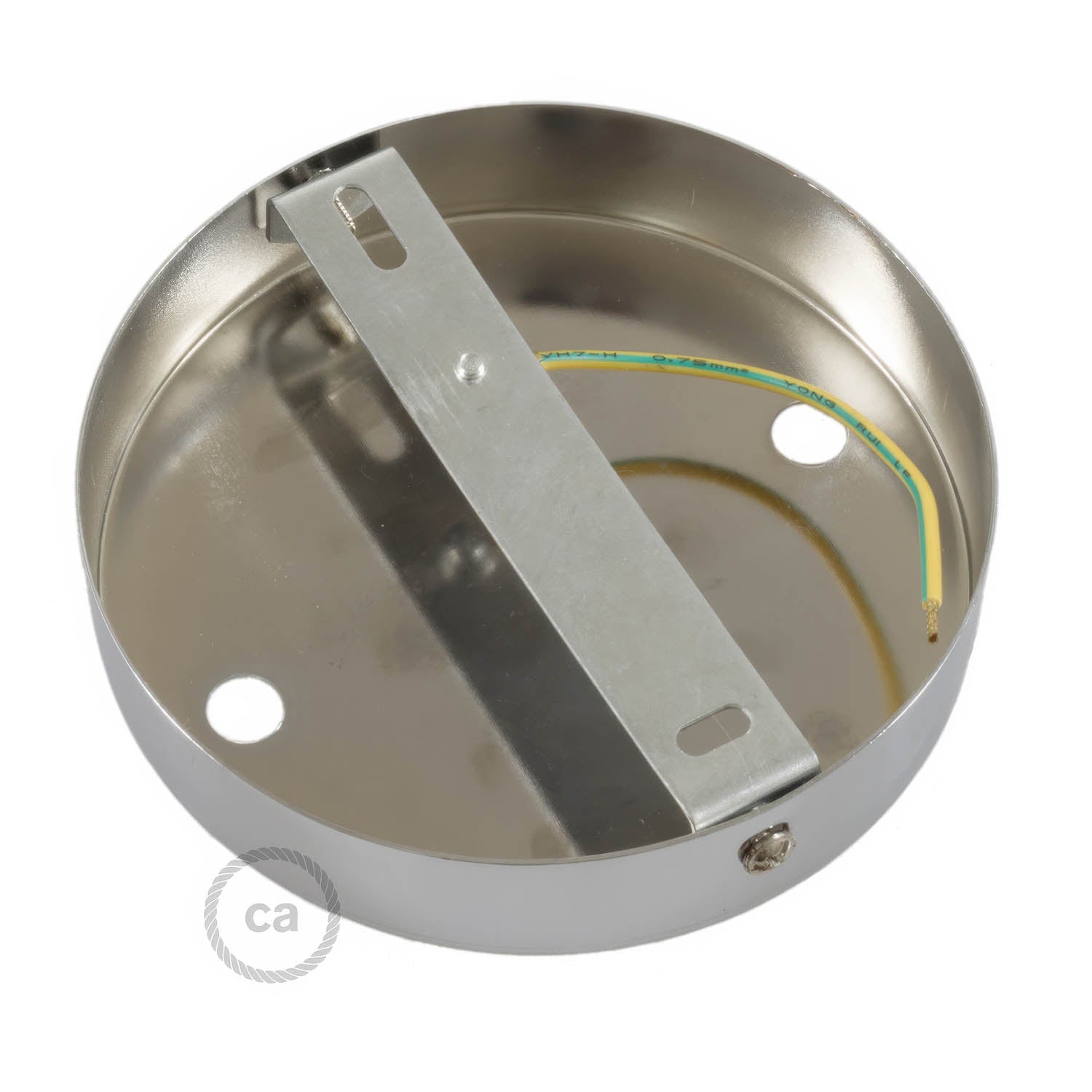 Tehničke specifikacije seta metalne stropne rozete Promjer: 120 mm. Promjer rupa: 10 mm. Materijal: metal. Stropno pričvršćenje s nosačem.