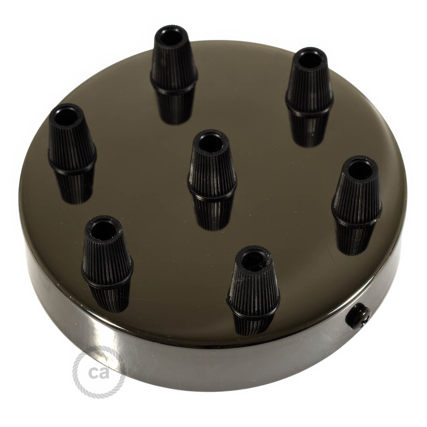 Kit stropna rozeta od metala s 7 rupa u boji crni biser omogućuje ti izradu stropne ili zidne svjetiljke sa 7 izvora svjetlosti modernog i sofisticiranog karaktera. Završna obrada crni biser, sa svojim diskretnim odsjajima, daje dubinu i stil prostoru, savršeno se uklapajući u minimalističke, industrijske ili elegantne interijere. Metalna konstrukcija jamči izdržljivost i dugotrajnost.
