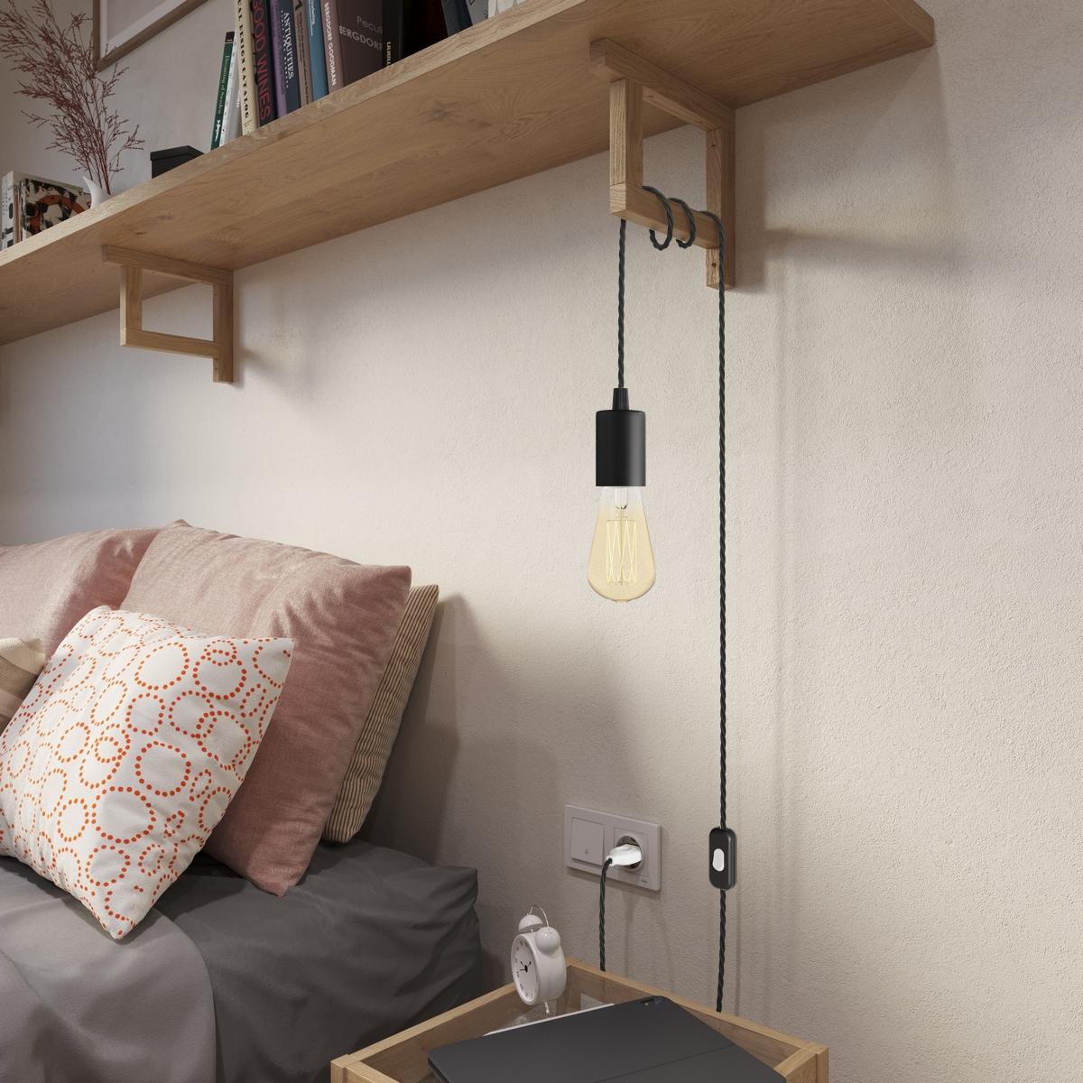 Douille : 1X [KBM4011VN] Kit douille E27 cylindrique en métal - Cable clamp: Conical, Finition: Noir