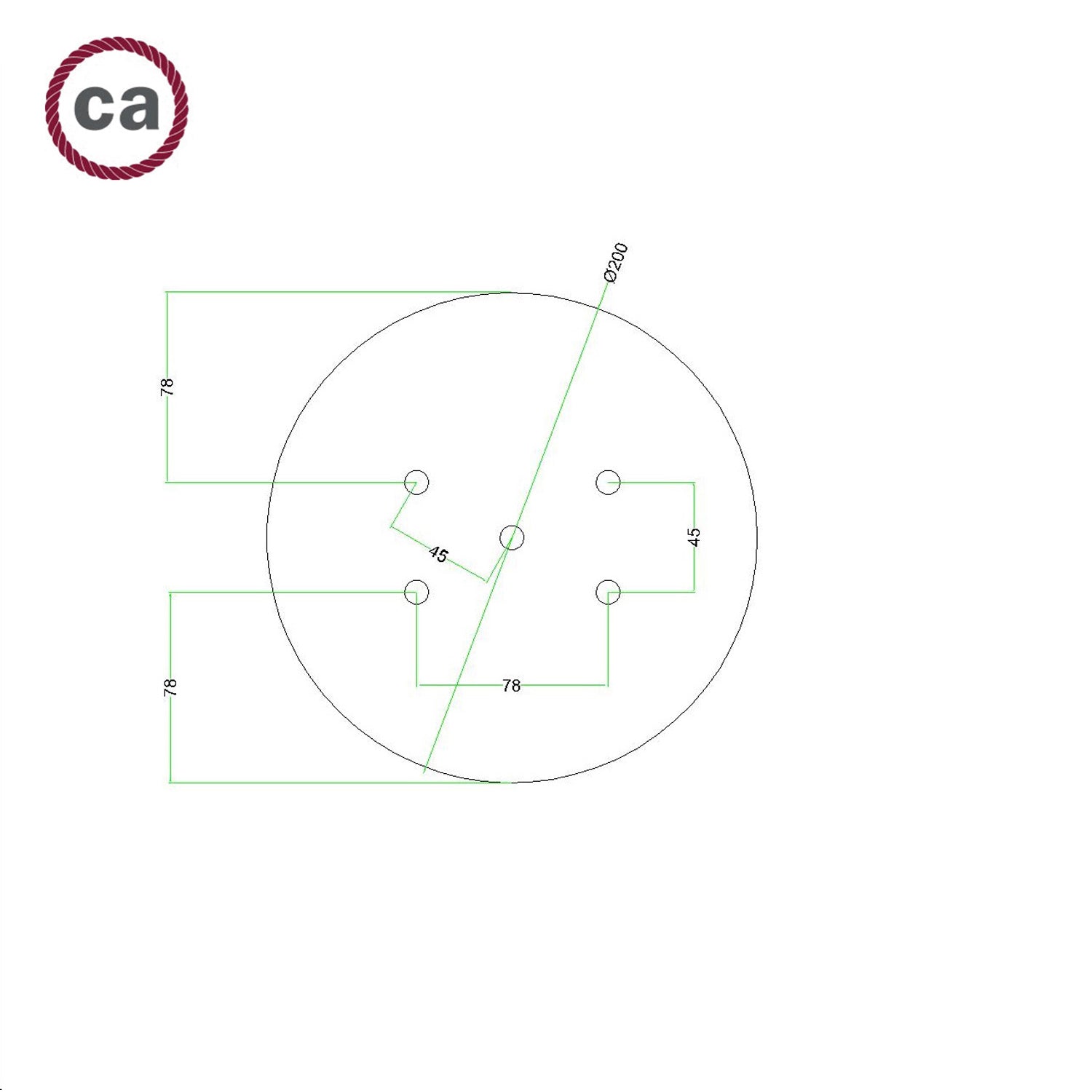 Rose-One je patentirani sustav Creative-Cablesa, ovdje u mat crnoj izvedbi. S promjerom od 200 mm i 5 otvora, sadrži sve što vam je potrebno za izradu vaše stropne rozete s izraženim dizajnom.