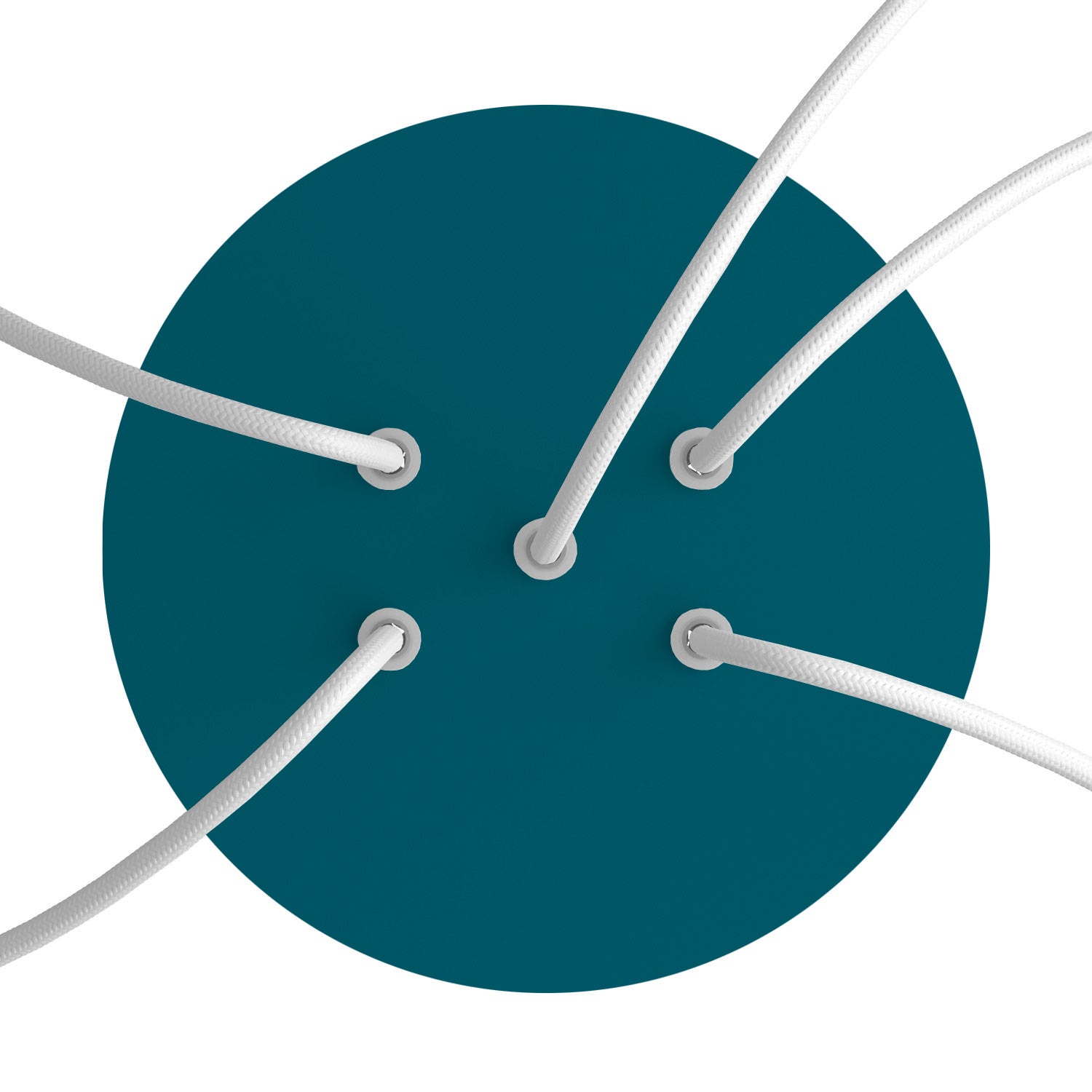 Rose-One je patentirani sustav Creative-Cables, predstavljen u završnoj obradi petrol boje. Ima promjer od 200 mm s 5 rupa i nudi sve što vam je potrebno za sastavljanje vaše stropne rozete s osobnošću.