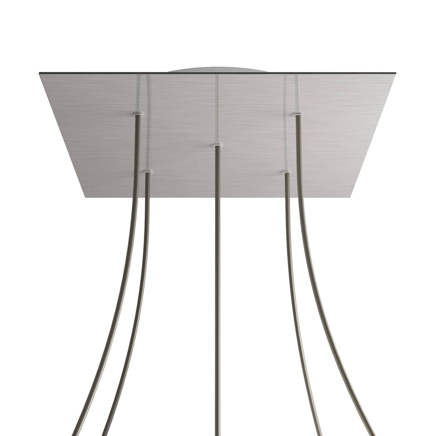 Potpuni sustav Rose-One kvadratnog oblika u završnoj obradi u boji livadne trave, svježoj i prirodnoj, ima stranicu od 400 mm s 5 rupa i uključuje sve što ti je potrebno za sastavljanje svoje stropne rozete! Odaberi oblik, grafiku, dimenziju i broj rupa koji najbolje odgovaraju tvom interijeru.