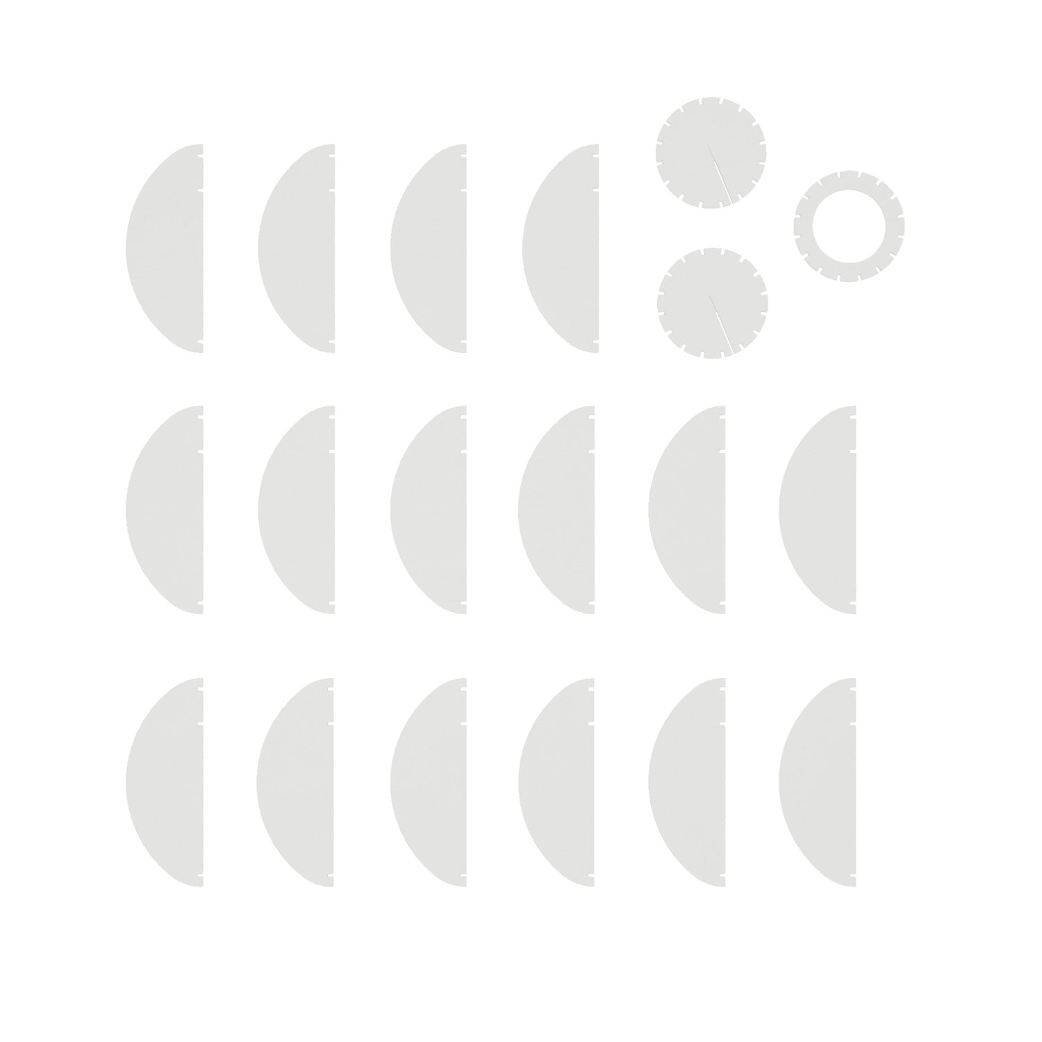 Eliptični oblik, sastavljen od 16 vertikalnih lamela i 3 horizontalne strukture od recikliranog PET-a, jamči čvrstoću i jednostavno sastavljanje, uz pažnju na održivost. Bijela melange završna obrada dodaje svestranost i lakoću, čineći LAMPSHHADE savršenim za moderne dnevne boravke, nordijske prostore ili kreativne urede koji zahtijevaju stil i funkcionalnost.